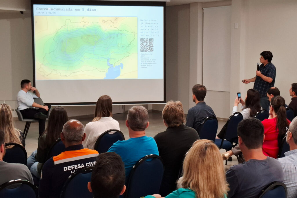 Trazendo projeções sobre o futuro, o palestrante fez um alerta sobre os impactos da mudança no clima, que tendem a tornar as inundações cada vez mais frequentes e intensas. “As maiores cheias que nós já vimos em nossas vidas, provavelmente nossos filhos e netos vão vivenciar a cada cinco ou dez anos”, alertou.
