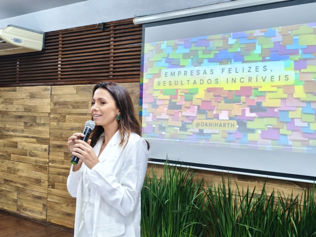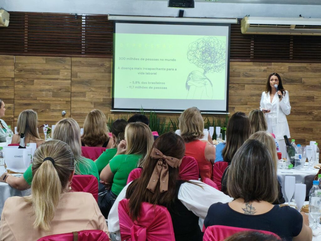 Na sua conversa com as presentes, Danielle Hart trouxe reflexões sobre o impacto do bem-estar e da felicidade no ambiente corporativo, mas também social e familiar, destacando que esses fatores estão diretamente ligados à produtividade, engajamento e resultados das empresas. A especialista abordou a felicidade não como um conceito abstrato, mas como uma construção diária, baseada em escolhas, comportamentos e autoconhecimento. “Devemos ter um aprendizado do quanto a felicidade é uma habilidade, é algo intencional. Se a gente deseja ser feliz, e colher os frutos disso, o mais importante é a gente reconhecer que é preciso ter a intenção de colocar emoções positivas no nosso dia a dia”, disse. “E como fazemos isso? Primeiro praticando a gratidão, que é uma ferramenta de emoção positiva, pois ela abre nossos corações, mentes, tornando-nos mais receptivos e mais criativos”, afirmou. “Mas também tendo serenidade, boas relações, e calma”, afirmou, ao destacar a importância de momentos de “pausa” na vida das mulheres.