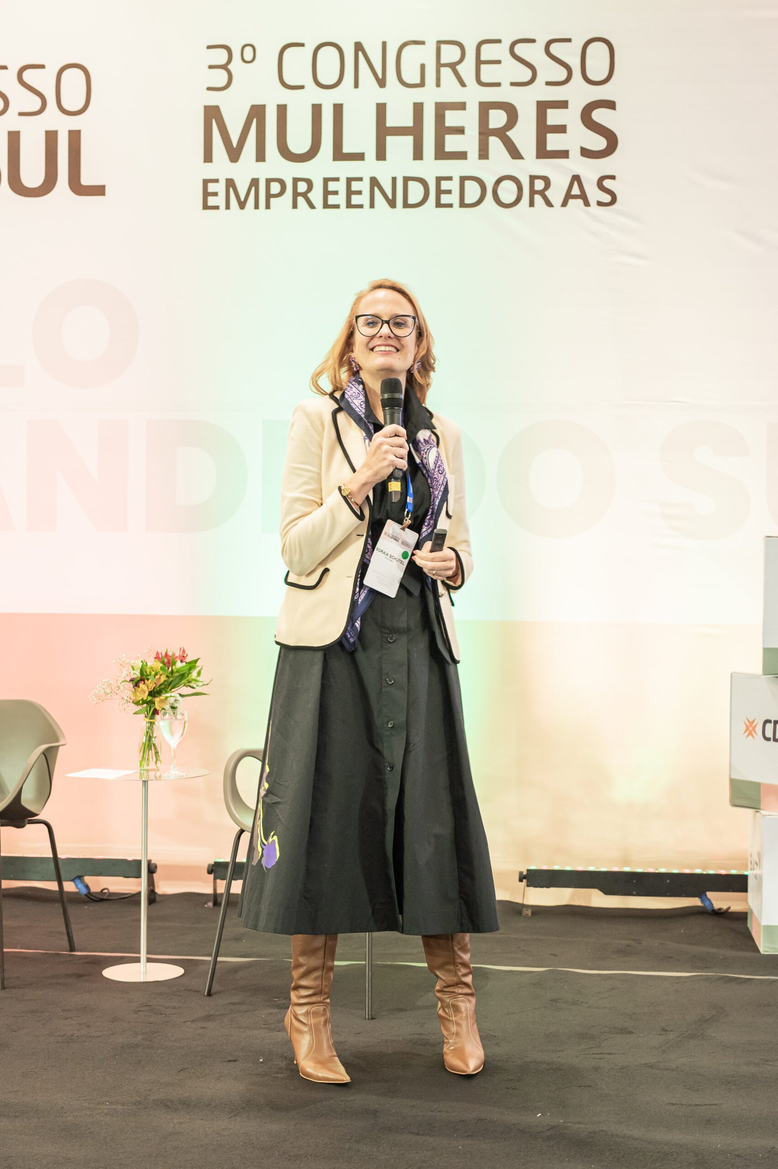 A terceira palestra do 3º Congresso Mulheres Empreendedoras e do 20º Congresso da FEDERASUL foi ministrada pela doutora em administração pela UFRGS e co-fundadora e empresária da Sonata Brasil, Soraia Schutel. Ela falou sobre inteligência e fortalecimento emocional em momentos de crise, em um lotado auditório da CIC Bento Gonçalves, nesta quarta-feira.