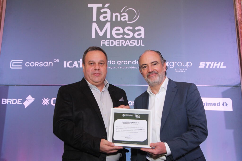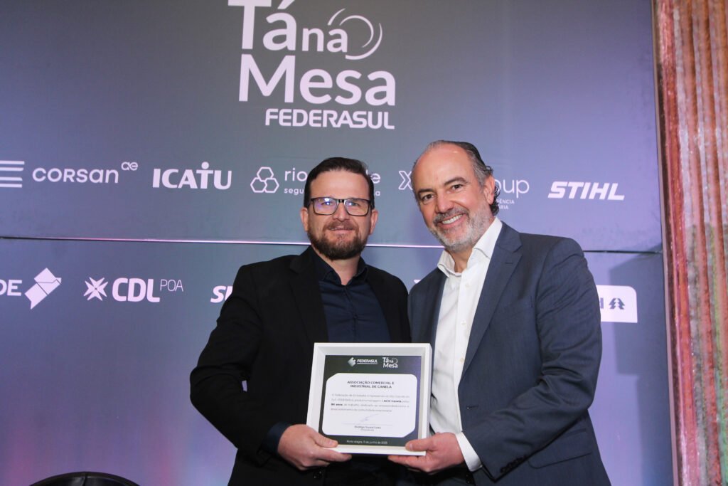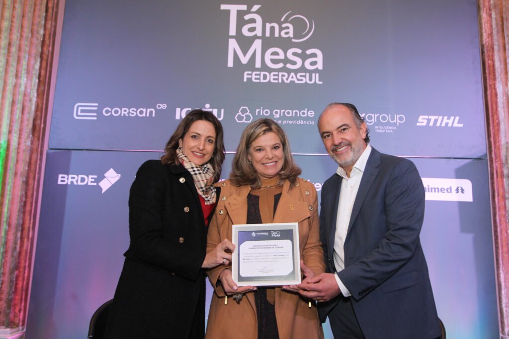 Durante o Tá na Mesa desta quarta-feira (11), a Federasul prestou homenagens a três importantes entidades empresariais do Rio Grande do Sul, em reconhecimento às suas trajetórias e contribuições para o desenvolvimento do empreendedorismo e da comunidade empresarial.