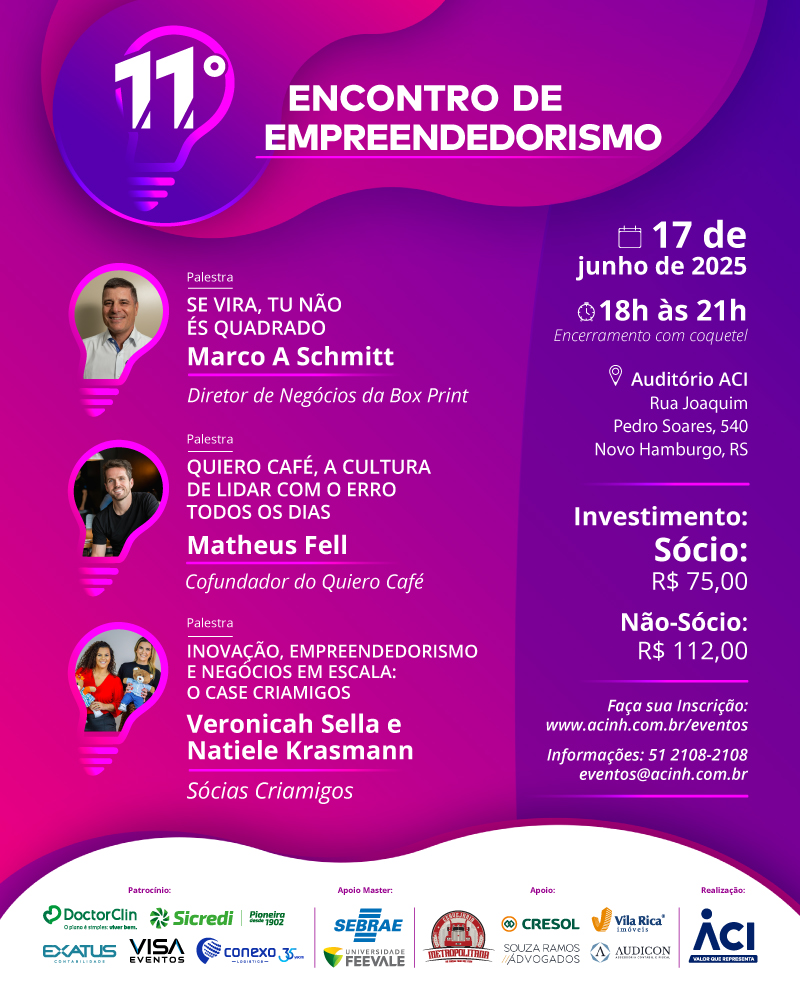 11° Encontro de Empreendedorismo da ACI Novo Hamburgo ocorre dia 17 com palestras inspiradoras Leia mais