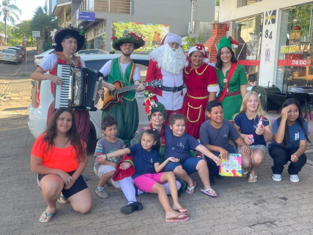 O Cortejo de Natal da CDL Lajeado segue iluminando o comércio da cidade, espalhando música, encanto e o sentimento especial que só esta época do ano proporciona. Enquanto circula pelas ruas, o grupo formado pelo Papai Noel, Mamãe Noel, os duendes Tum Tum e Jingle e dois trovadores transforma cada parada em um momento de alegria para consumidores e lojistas. Com interações divertidas, fotos, canções e a distribuição de doces e kits da Florestal Alimentos, o Cortejo reforça a magia do Natal e ajuda a criar uma atmosfera acolhedora que inspira emoções, aproxima as pessoas e aquece as vendas no comércio local.
