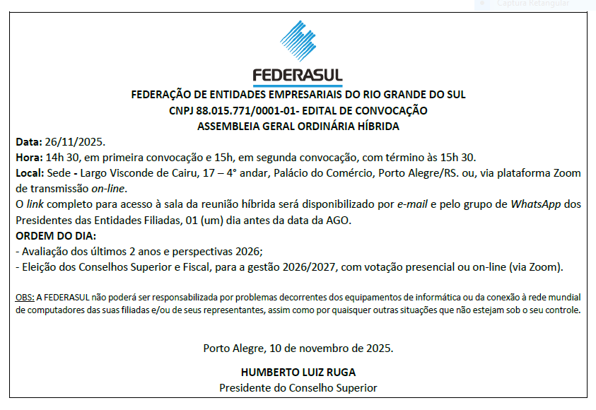 edital FEDERASUL