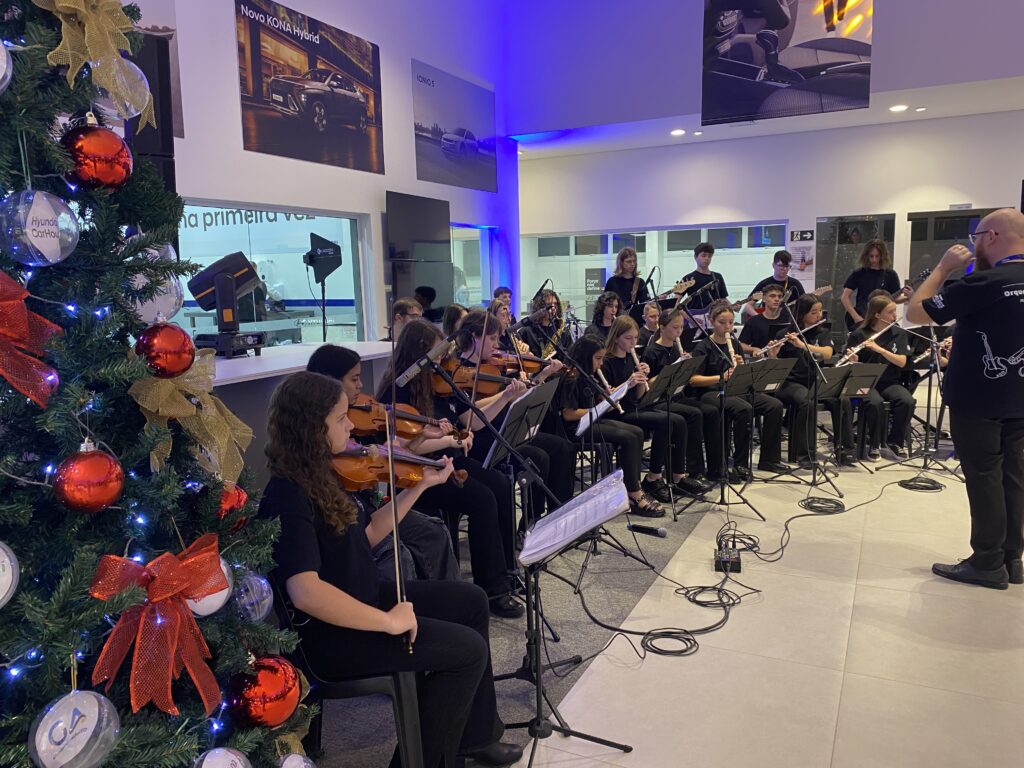 A partir de hoje (17), a promoção Lajeado Brilha está em vigor. O lançamento ocorreu nesta quinta-feira à noite (16) na CarHouse Hyundai, reunindo empresários, diretoria, lideranças e imprensa. O espaço foi ambientado com pinheiro e luzes natalinas, contagiando o público com o clima da data repleta de emoção e responsável pelo principal resultado de vendas do ano do comércio. A programação teve como atração especial a Orquestra do Sesi Lajeado.