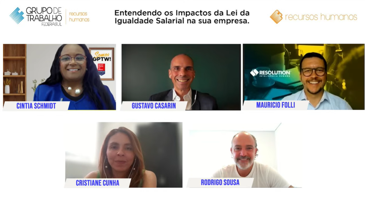 Mediado por Cintia Schmidt, três convidados analisaram aos impactos da lei da igualdade salarial nas empresas. Participou o presidente Rodrigo Sousa Costa