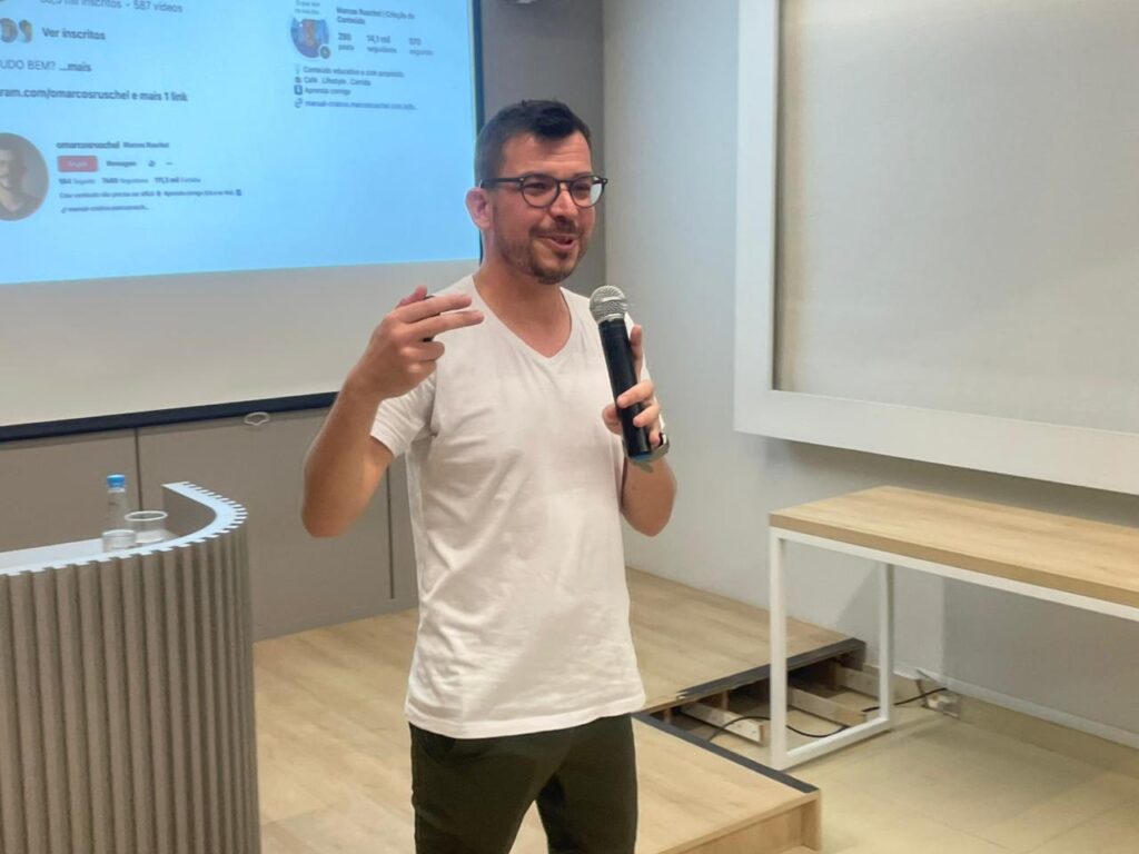 Com mais de 16 anos de experiência em audiovisual e redes sociais, Ruschel abriu sua explanação instigando uma reflexão sobre os motivos que levam as empresas a criarem conteúdo. A partir disso, ele apontou os cuidados necessários no momento de planejar as publicações, sempre considerando o tipo de negócio e o que faz sentido para ele. Segundo o profissional, é preciso estar atento a alguns pontos para que não se gere um problema para a empresa, passando uma imagem incorreta, comprometendo as entregas futuras ou até mesmo bloqueando a conta. Assim, ele sugeriu evitar assuntos polêmicos, política, meme tiro no pé, temas técnicos demais, sorteios, compra de seguidores, influenciadores que não dão resultado e ações fora das diretrizes das redes.