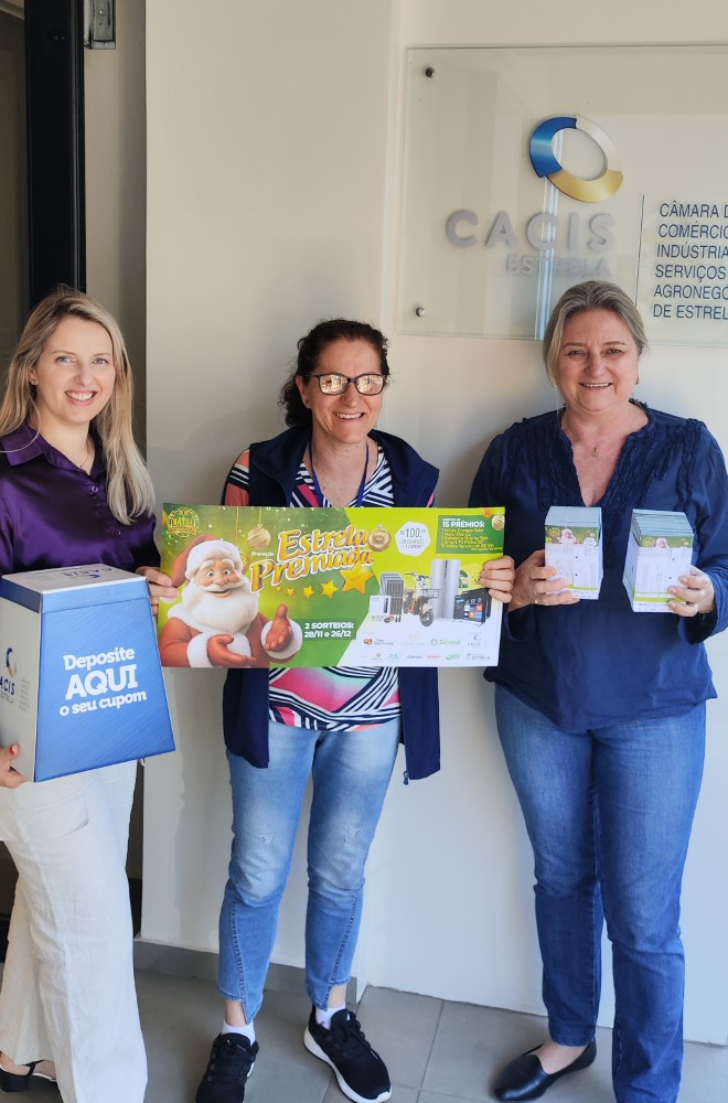 A temporada 2025/26 das campanhas de incentivo ao comércio de Estrela e outras áreas pontuais da economia já foi aberta pela Câmara de Comércio, Indústria, Serviços e Agronegócio (Cacis) de Estrela. A arrancada sempre se dá no corrente ano a partir da “Campanha Estrela Premiada” e segue no seguinte com outras cinco promoções. A entidade comemora a participação de mais de 70 empresas que aderiram ao pacote este ano e que estarão juntas na parceria das seis iniciativas comerciais do cronograma. Além da campanha ligada ao Natal em Estrela, fazem parte do calendário as promoções “Páscoa Fantástica”; “Dia das Mães Premiado”; “Mês dos Namorados”; “Meu Pai, Minha Estrela” e “Dia das Crianças”, esta última em modelo especial, com dia especial de atividades.