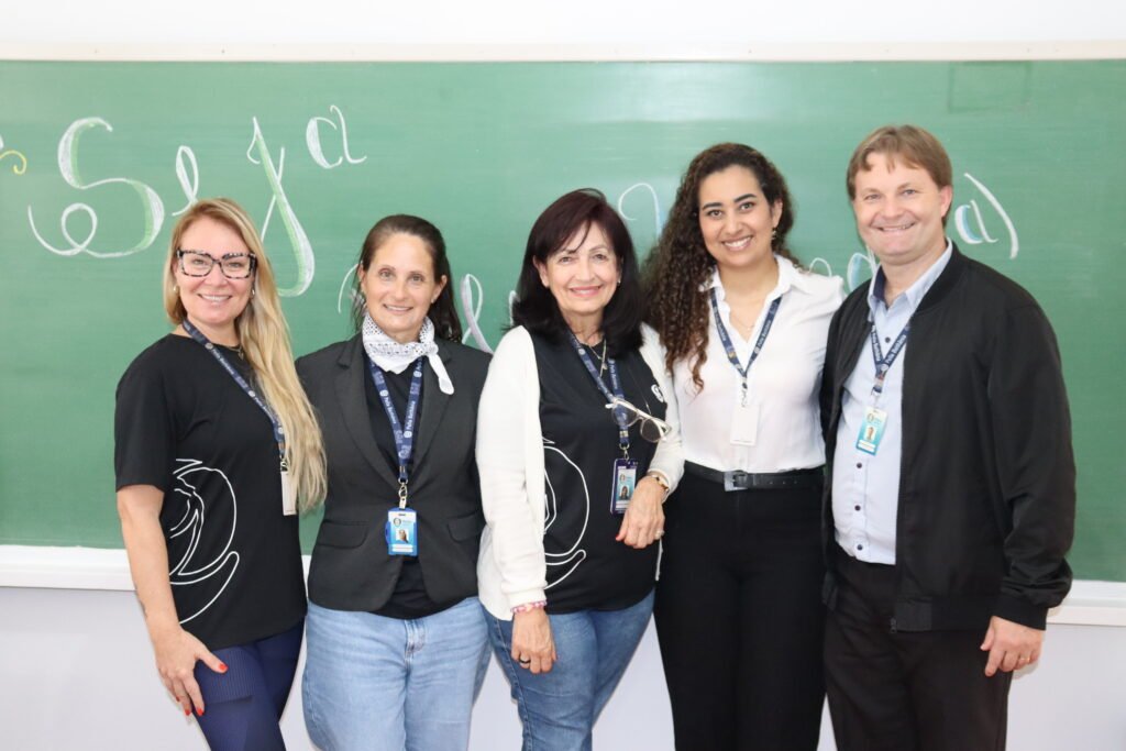 – Professoras Fabiana Kroth, Carla Oliveira e Maria Elaine Rosa Martins, assistente de captação e projetos Carina Alves e coordenador geral Dério Milke