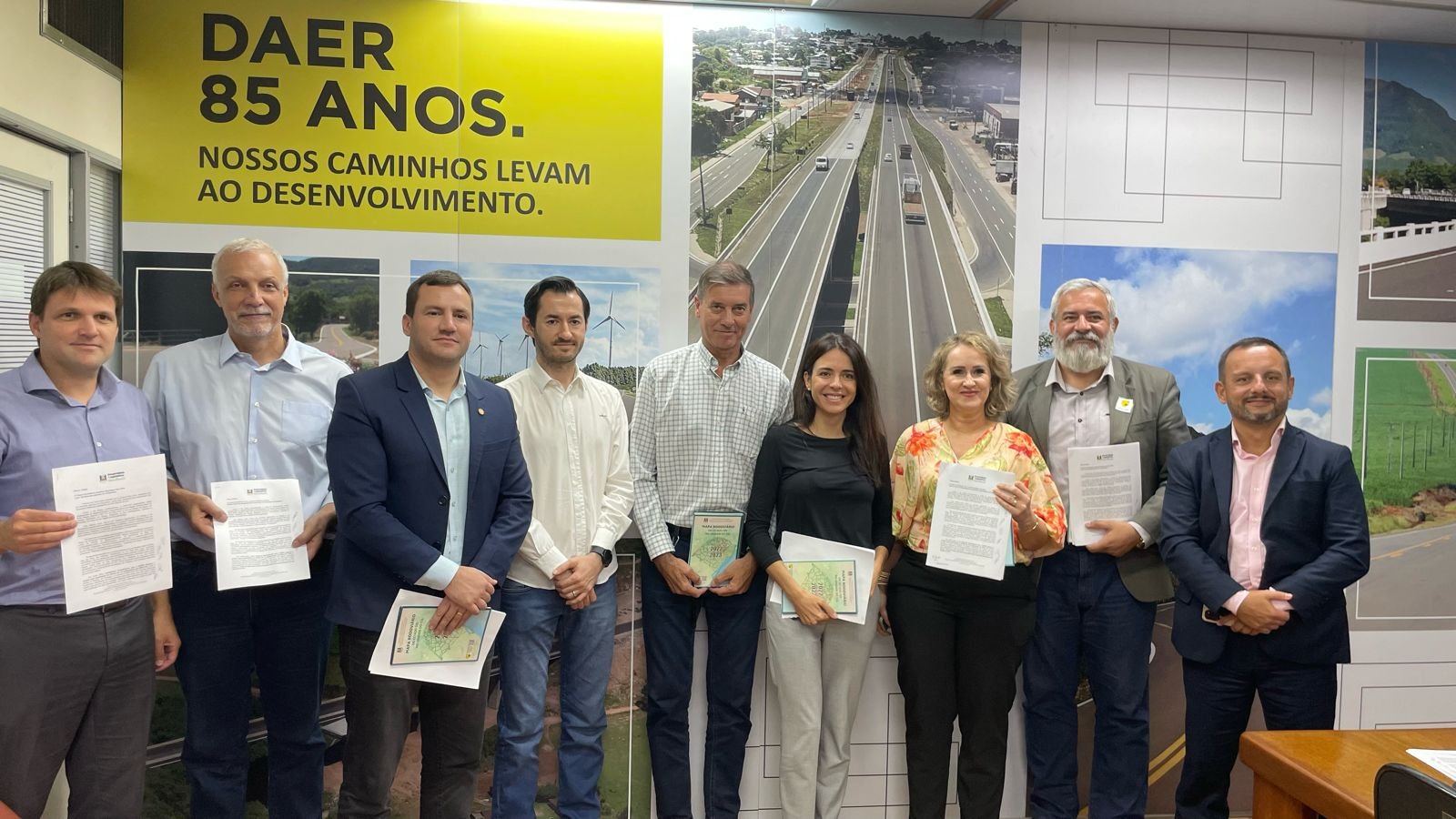 O vice-presidente de Integração da FEDERASUL, Rafael Goelzer, esteve presente na reunião que definiu a destinação de R$ 3 milhões para o projeto de duplicação da rodovia RS 118, nesta sexta-feira (16), na sede do Departamento Autônomo de Estradas e Rodagem (DAER), em Porto Alegre. A líder da bancada gaúcha na Câmara dos Deputados, deputada Any Ortiz, e os deputados estaduais Patrícia Alba e Capitão Martim também estiveram no encontro. Participaram ainda, o presidente do DAER, Luciano Faustino da Silva, do diretor técnico Sívori Sarti da Silva e do coordenador do movimento RS 118 Sem Pedágio, Darcy Zottis.