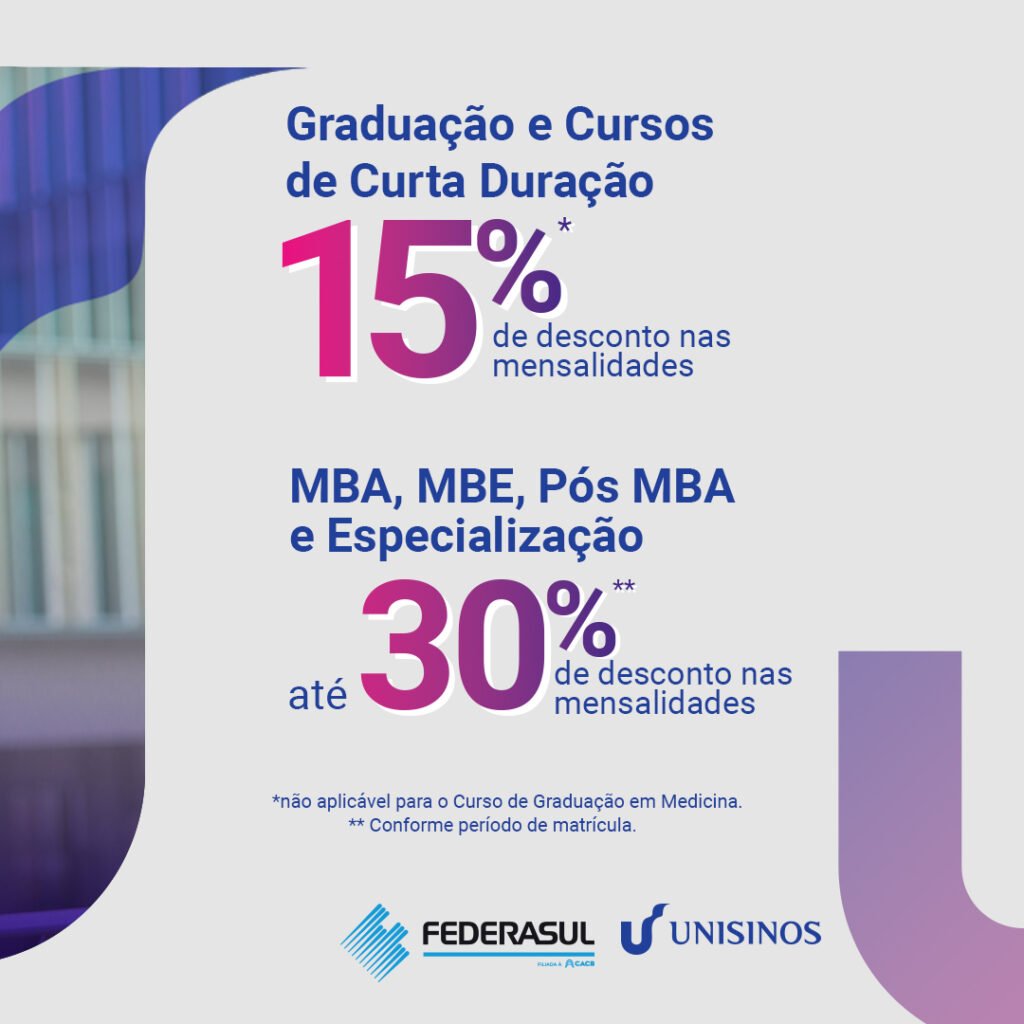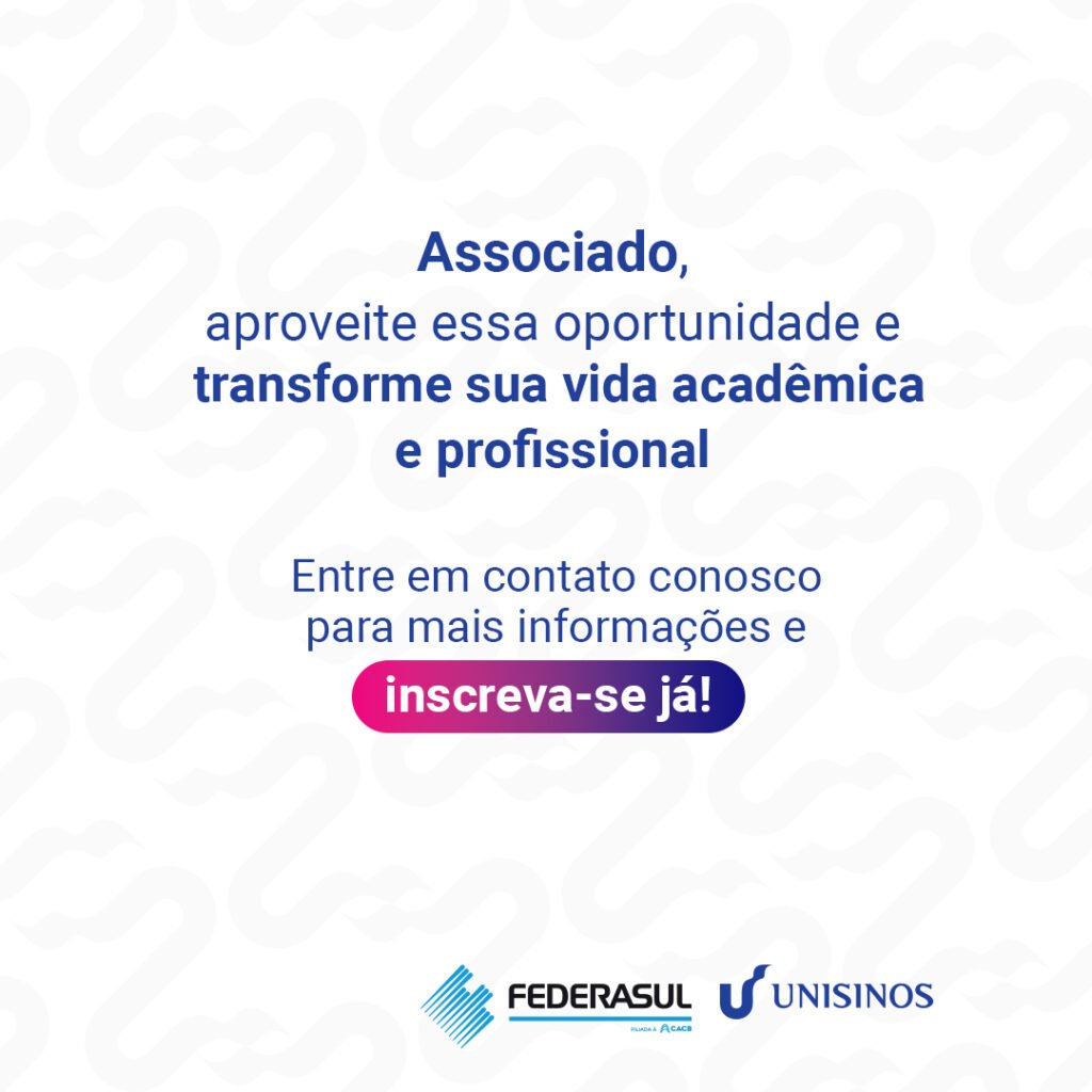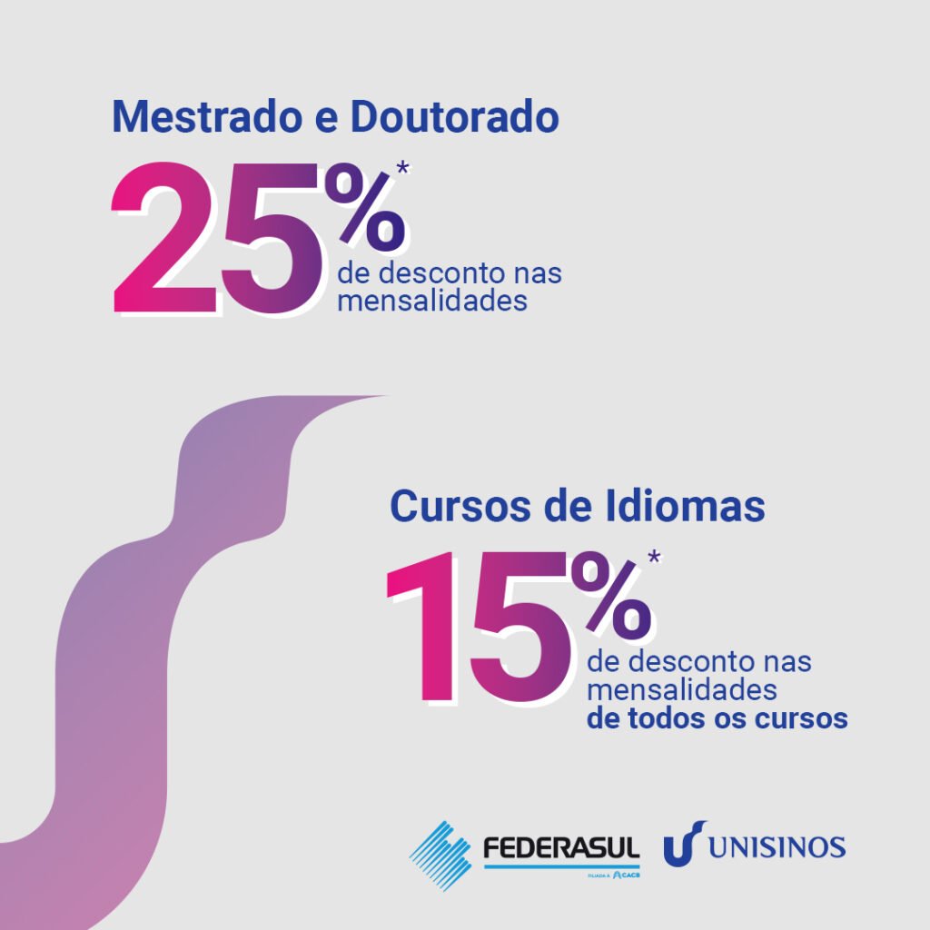 Acordo de cooperação relacionado a descontos nos cursos de graduação, lato e estrito senso e idiomas, para os associados das filiadas da Federasul. O acordo prevê um repasse trimestral às entidades filiadas sobre as inscrições de alunos que se matricularem mediante cadastro via Federasul e suas filiadas, de acordo com a receita líquida efetivamente recebida.